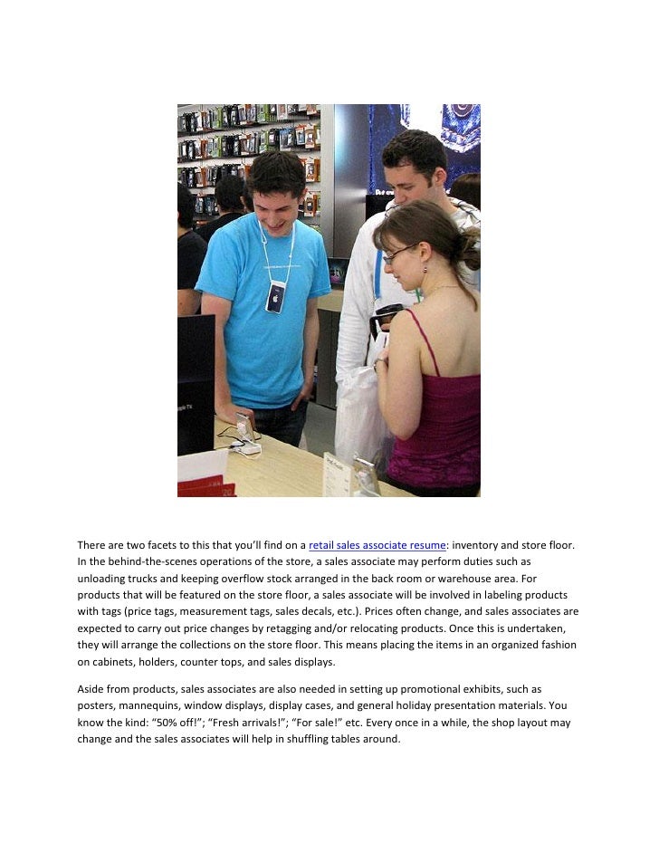The associates have to create awareness of the product so. They confer with customers to decipher This job requires an individual to be assertive yet friendly and to possess keen marketing skills because getting a customer to agree to a particular sale. The sales associate job description is to generate profitable sales.