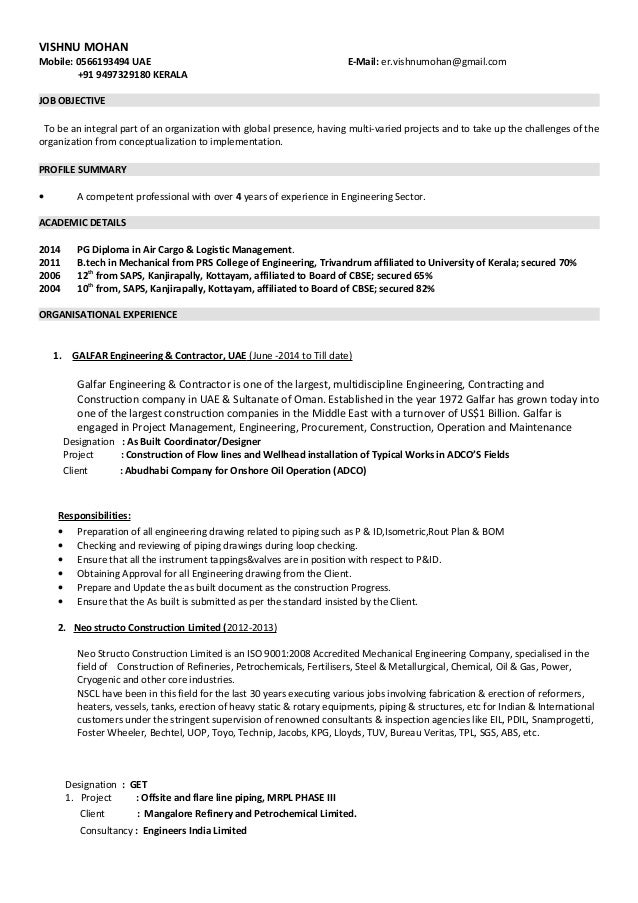 However, for experience mechanical engineer resumes it is preferable to keep a resume summary in place of resume objective.