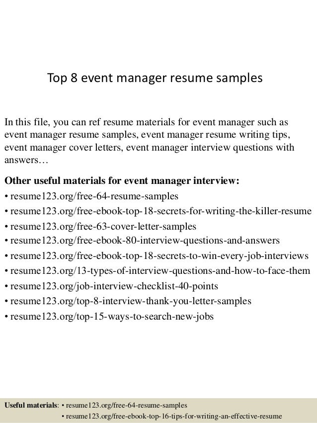 Top 8 event manager resume samples